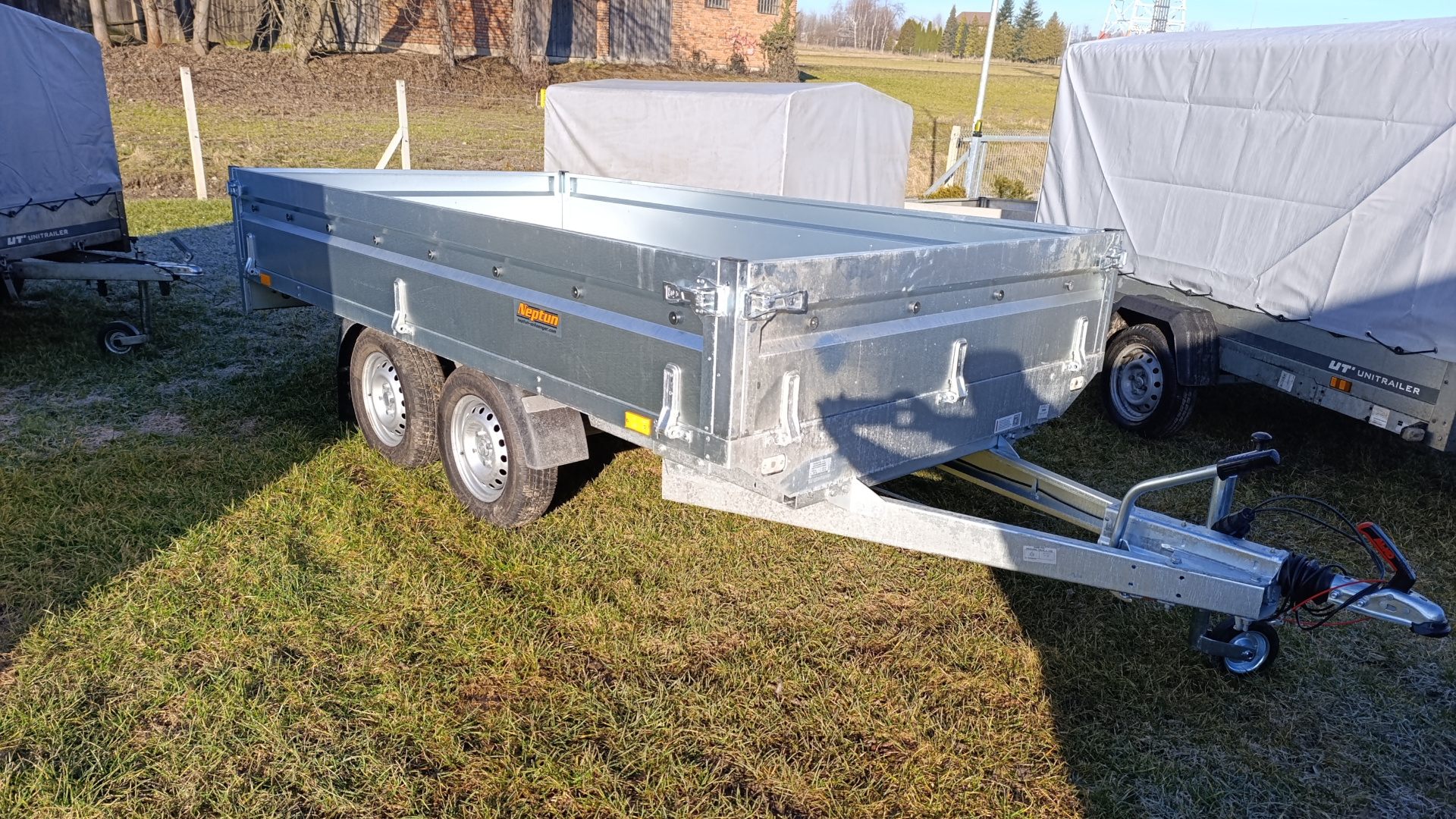 duża przyczepa z hamulcem, możliwość zdemontowania burt do samej platformy